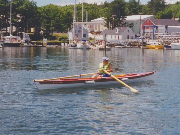 With the sailing rig in hand and my prototype fifteen-footer done, it was time for sea trials. I hauled the boat up to "The Nip" and took her for a shake-down cruise. This was the first boat I had ever created from concept through design and construction, and I was very pleased with the results. The boat rowed easily and was lively and re