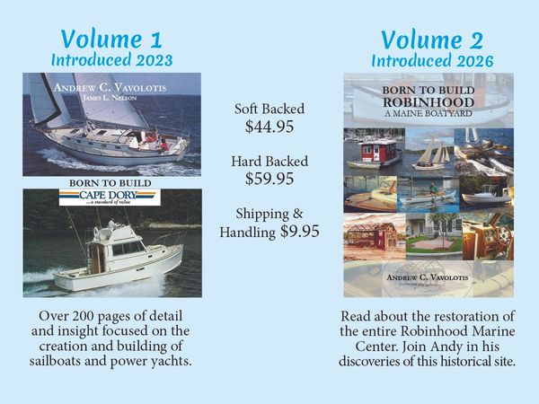 Just got my copy of Andrew Vavolotis' book Born to Build Cape Dory...a standard of value and can't put it down. Well I did to make this post. If you love, have ever owned, own now or ever wanted to own a Cape Dory I can't recommend this book enough. Well written with amazing historical pictures, it tells a fascinating story behind our beloved brand! I grew up sailing with my Dad and almost every weekend in the Summer we would travel up to Marblehead, MA which is where I actually live now to sail. Like a lot of fans, I suspect, I first fell in love with and purchased a Typhoon. What an amazing boat! I recently "went bigger" and am now the proud owner of one of the last 31s made. Thank you for all you did for Cape Dory and for sharing your journey with us!
